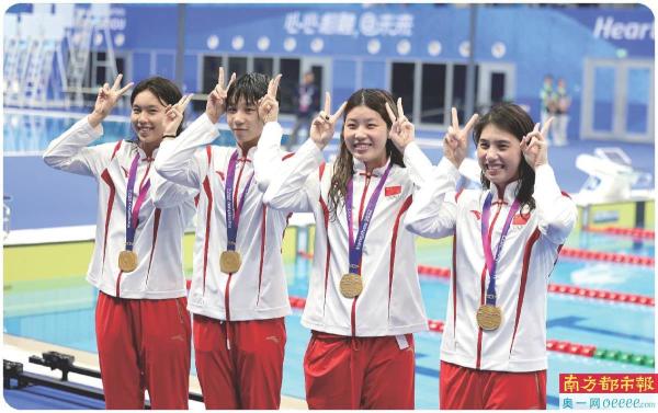 海阔凭鱼跃,天高任鸟飞 9月24日,游泳比赛开赛,由杨浚瑄、程玉洁、吴卿风、张雨霏组队的中国队夺得女子4×100米自由泳接力项目金牌。