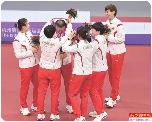 毕竟功成何处是 五湖云月一帆开 9月26日,乒乓球女子团体决赛,中国队以3比0击败日本队夺得金牌,女乒队员给主教练马琳戴上金牌。