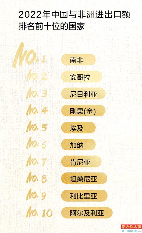 从2000年到2022年,中国对非洲进出口值由不足1000亿元攀升至1.88万亿元人民币,累计增长超20倍,年均增速达17.7%。从贸易额来看,去年对华进出口额排名前十位的非洲国家分别是南非、安哥拉、尼日利亚、刚果金、埃及、加纳、肯尼亚、坦桑尼亚、利比里亚和阿尔及利亚,其中南非、安哥拉、尼日利亚、刚果金、埃及和加纳等6国与中国的进出口贸易额突破百亿美元大关。此外,据海关总署透露,今年前7个月,中非贸易延续良好势头,进出口值1.14万亿元,同比增长7.4%。