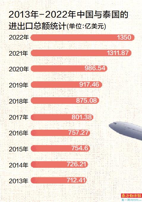 以泰国为例,南都大数据研究院观察了中、泰两国十年来的双边贸易数据。