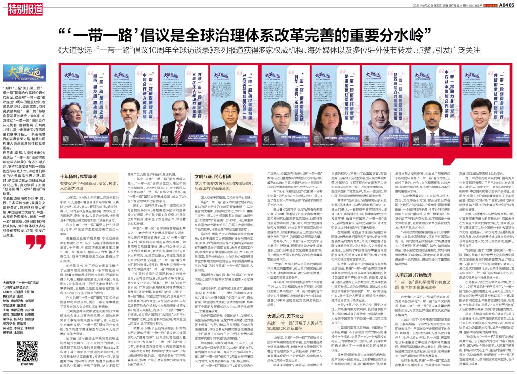 连日来,南都、N视频推出《大道致远·“一带一路”倡议10周年全球访谈录》,专访长期关注、支持和深度参与这一倡议的国际权威人士,讲述他们眼中的这条造福世界之路。