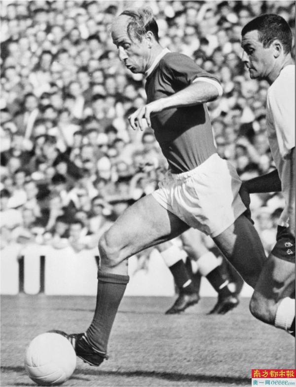 1969年12月5日,在伦敦举行的一场比赛中,英格兰足坛名宿博比·查尔顿带球突破。 新华社发