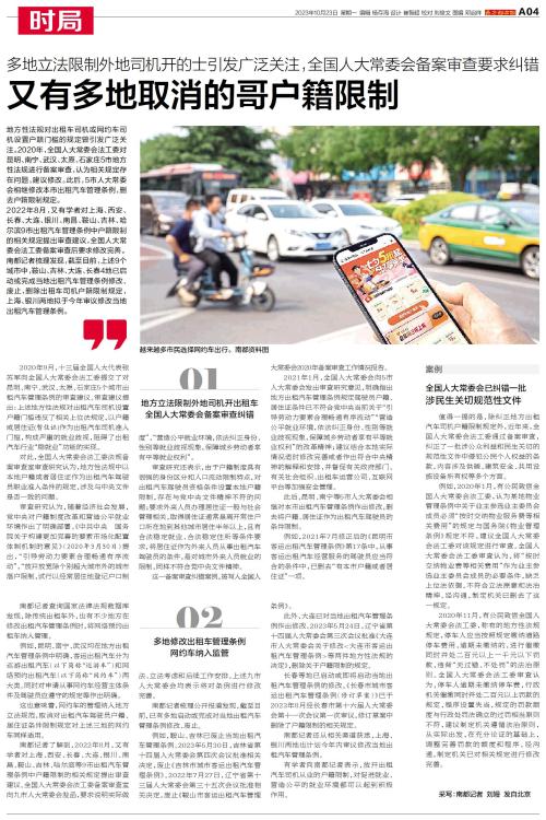 地方性法规对出租车司机或网约车司机设置户籍门槛的规定曾引发广泛关注。