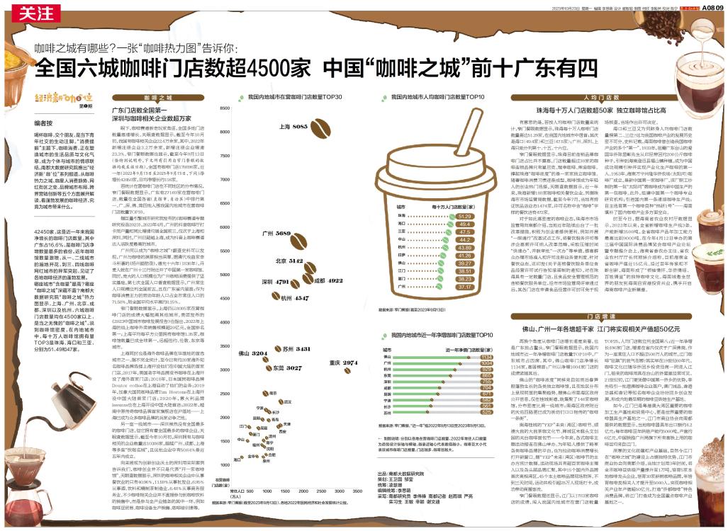 全国六城咖啡门店数超4500家 中国“咖啡之城”前十广东有四