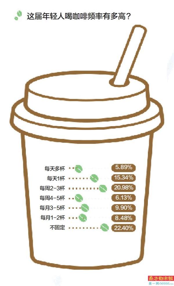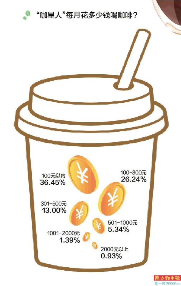 90后的Connie,每天挤出体育西地铁站后,会先买杯咖啡再回去。从她工作开始,这个“打咖”习惯已持续五年多。事实上,像Connie这样的“咖星人”不在少数。南都大数据研究院调查结果显示,全体受访青年中,89.12%表示自己喝过咖啡,每周消耗3杯以上的比例约占27%,每周喝超过5杯咖啡的受访者也有近两成。而咖啡作为职场人士的最佳拍档,35.22%的受访在职青年表示每周“豪饮”3杯以上。从不同地区来看,来自北上广深、新一线城市的受访青年更爱喝咖啡。具体而言,每周消耗3杯以上的受访青年中,广州、深圳的比例约占40%。