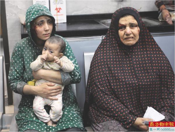 10月23日,受伤的成人和儿童在加沙城一家医院等候治疗。