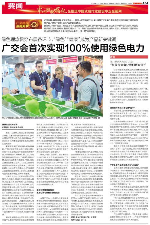 户外家具、餐厨用具、家居装饰品……围绕人们的美好生活,第134届广交会第二期参展商纷纷带来自主研发的创新产品,“绿色”“健康”成为产品新的关键词。