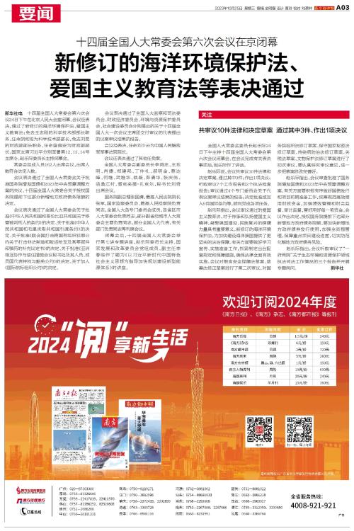 新修订的海洋环境保护法、爱国主义教育法等表决通过