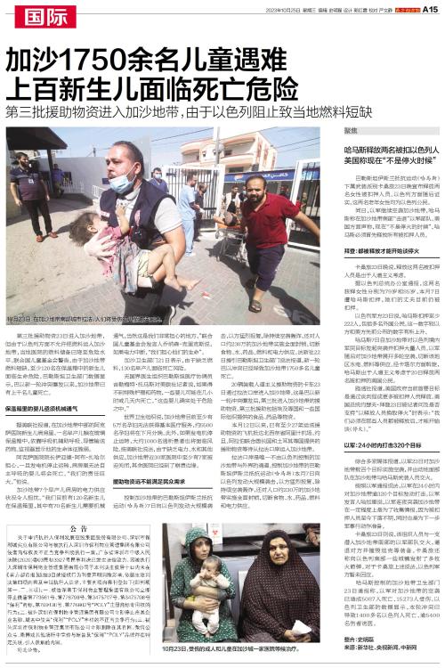 加沙1750余名儿童遇难 上百新生儿面临死亡危险