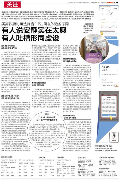 为共建共享文明安静的旅行环境,作为一项服务举措,铁路部门在京沪、京广、成渝高铁等部分复兴号动车组列车上,设置了静音车厢。