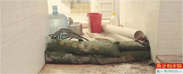 家住广州市海珠区江南中街得胜岗15号102房的黄先生,是受排污管堵塞影响最严重的住户。黄先生告诉南都记者,这两年来,家中污水倒灌的情况时有发生,“厨房和卫生间内常常有水涌出来。最严重的一次是我出差几天回来看到,客厅已经被淹了,所有家具都得重新换。”无奈之下,黄先生只能买来防汛沙袋堆积在厨房与客厅之间的通道,防止污水继续渗入客厅。