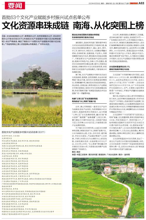 《关于公布首批文化产业赋能乡村振兴试点名单的通知》,经过严格遴选,确定了首批63个全国文化产业赋能乡村振兴试点名单。