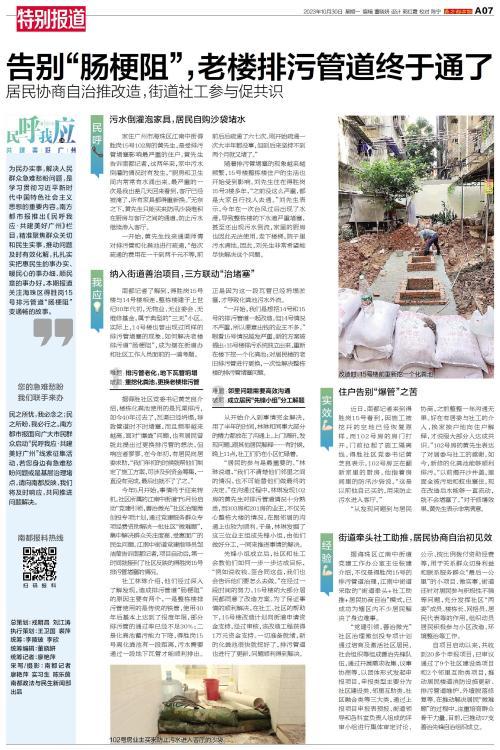 本期报道关注海珠区得胜岗15号排污管道“肠梗阻”变通畅的故事。