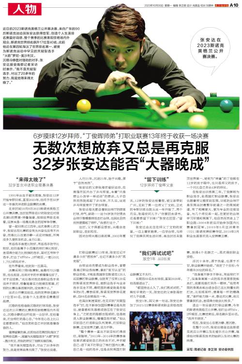沉稳冷静面对强劲的对手,张安达接受南都记者采访时表示,“我不是天赋型选手,付出了20多年的努力,我是觉得来得太晚了。”