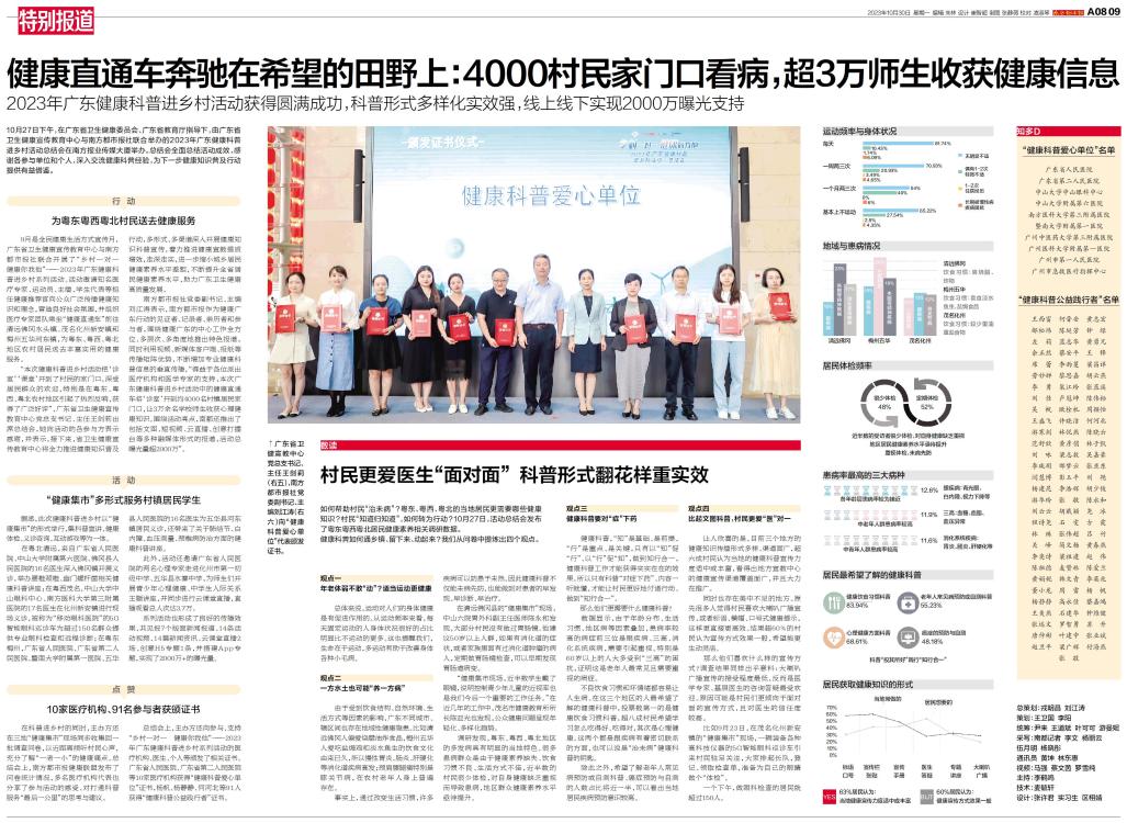 10月27日下午,2023年广东健康科普进乡村活动总结会在南方报业传媒大厦举办。