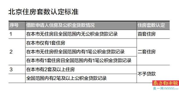新标准之下,如借款申请人(含共同申请人)在北京市无房且在全国范围内无公积金贷款记录的,执行首套住房公积金贷款政策;如借款申请人在北京市有1套住房的,或在北京市无住房但全国范围内有1笔公积金贷款记录的,或在北京市有1套住房且全国范围内有1笔公积金贷款记录,住房记录与公积金贷款记录不论是否为同一套的,执行二套住房公积金贷款政策;如借款申请人在北京市有2套及以上住房,或已使用过2次公积金贷款的,不予公积金贷款。
