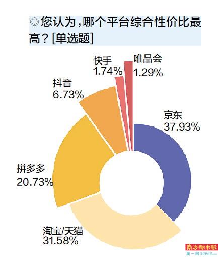 综合网购平台来看,37.93%的受访者认为京东的综合性价比最高。而通过交叉分析发现,双十一购买日用家清、母婴品类、家居家电、汽车用品的消费者认为,京东综合性价比最高,均超四成。这一结果也反映出,在原有品质和服务保障领先的京东今年以来聚焦的低价策略,在用户认知和促进前台交易转化方面,都取得了一定的成效。