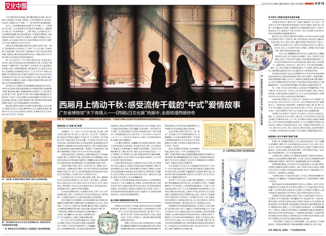 近日,广东省博物馆推出新展“天下有情人——《西厢记》文化展”,这也是粤博文学经典系列策展的又一重磅原创大展,在广东省博物馆一、二展厅展出。此次展览立足广东省博物馆馆藏,联合故宫博物院、中国国家博物馆、中国国家图书馆等13家省内外文博单位,遴选文物精品320件,多维度、全方位展示传统文化经典《西厢记》的历史价值和文化内涵。展期至2024年2月25日。