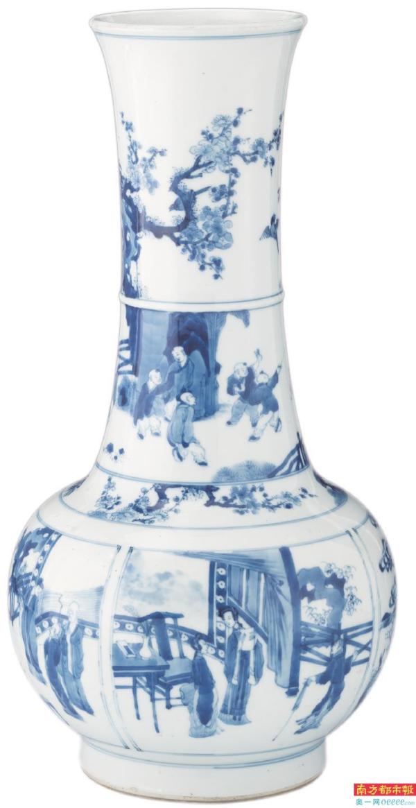 清 康熙青花《西厢记》人物故事图瓶,上海博物馆藏。