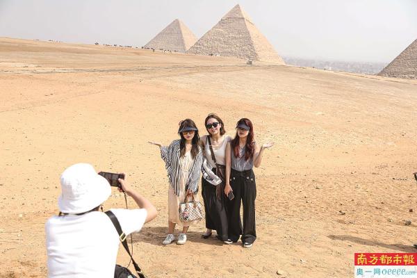 10月4日,中国游客在埃及金字塔前拍照。多国急盼中国游客。 新华社发