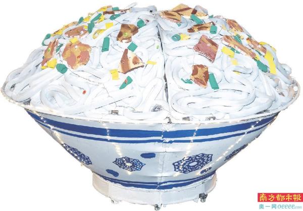以碗面、米饭、鱼肉等真假难辨的像生秋色作品所展现的“景色”,正是佛山秋色里独具特色的一部分。制作材料多是纸、碎布、香胶、蜡、陶泥、竹木等。 南都拍客 招力行 摄
