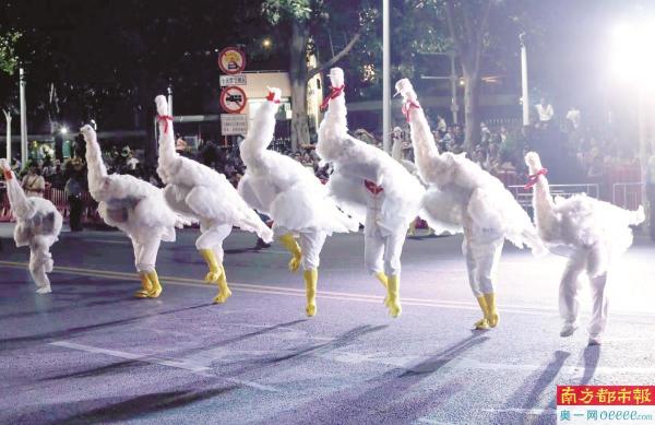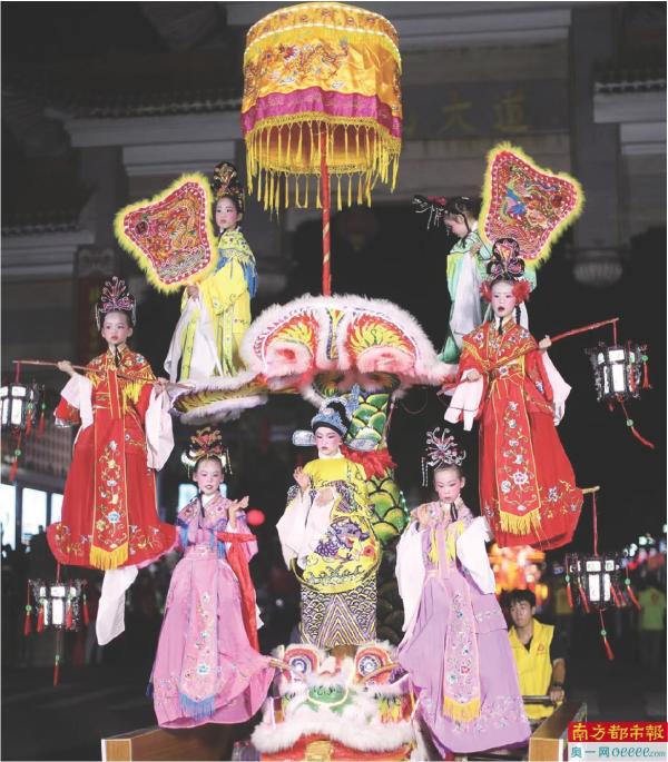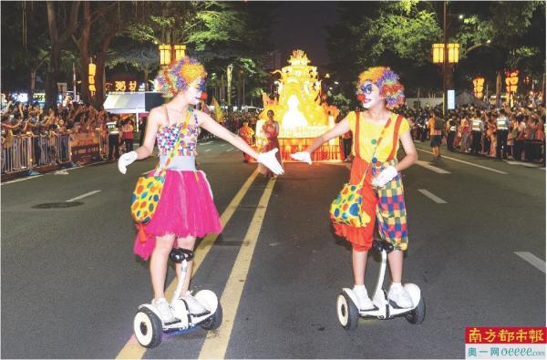 6. 11月5日,锦湖大道上,来自云浮连滩的飘色表演。 南都记者 郑俊彬 摄
