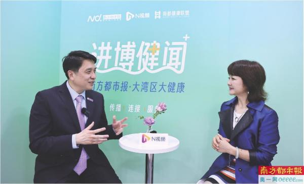 GE医疗中国总裁兼首席执行官张轶昊(左)接受南都记者曾文琼采访。