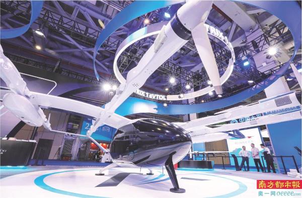 在第六届进博会汽车展区,御风未来自主研发的载人电动垂直起降飞行器Matrix 1迎来全球首展。 新华社发