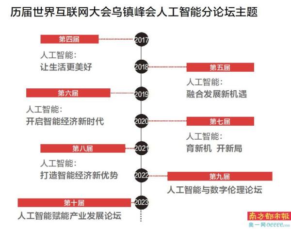 人工智能分论坛已是连续七年设置,分别聚焦安全、应用、技术、伦理、产业发展等话题。比如在第四届、第五届、第七届、第八届世界互联网大会上,人工智能分论坛分别以“让生活更美好”“融合发展新机遇”“育新机 开新局”“打造智能经济新优势”为主题,探讨技术的大范围、深层次创新应用,以及所带来的商业变革、产业发展和社会进步。