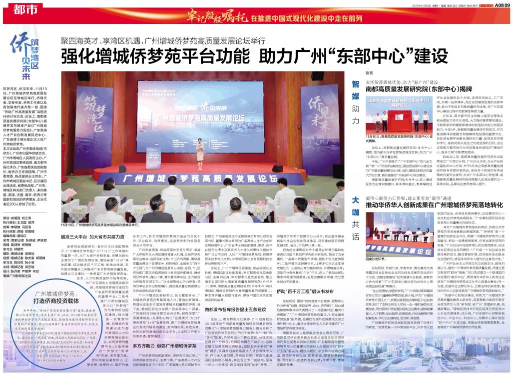 11月10日,广州增城侨梦苑高质量发展论坛在增城区举行。