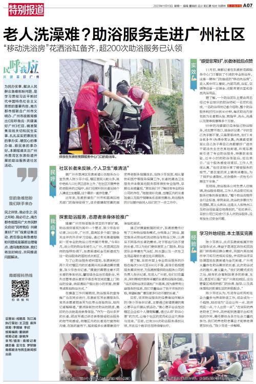 老人洗澡难?助浴服务走进广州社区