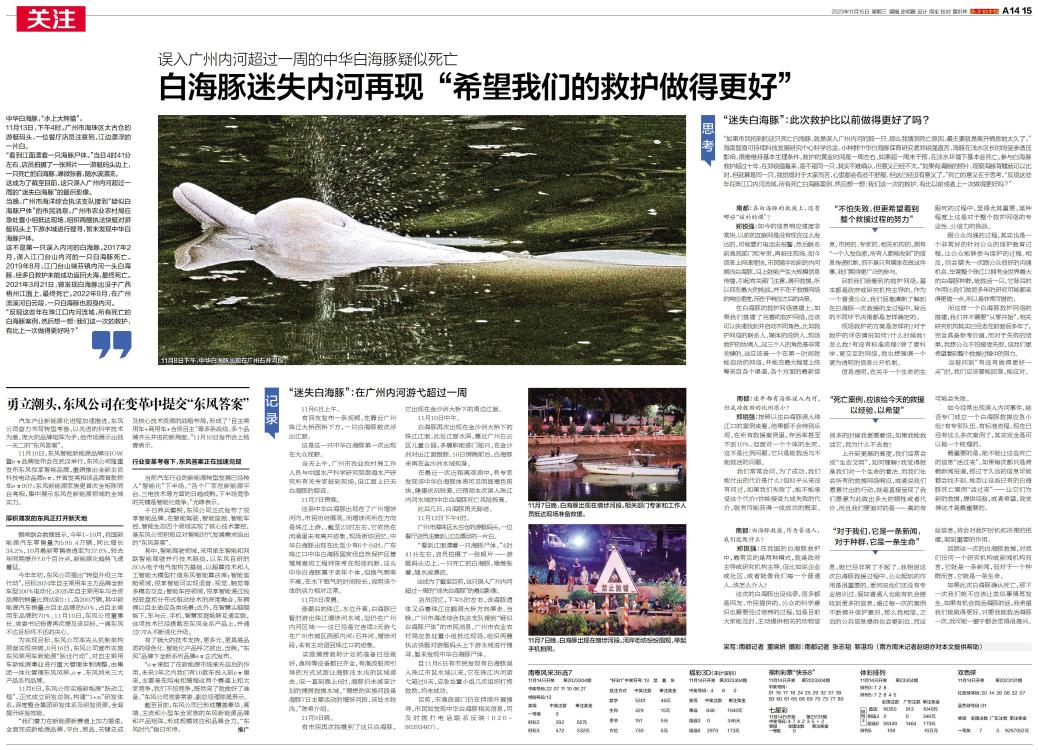 白海豚迷失内河再现 “希望我们的救护做得更好”