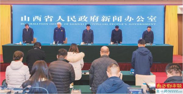 通报会前,参会人员向事故遇难者默哀。 新华社发