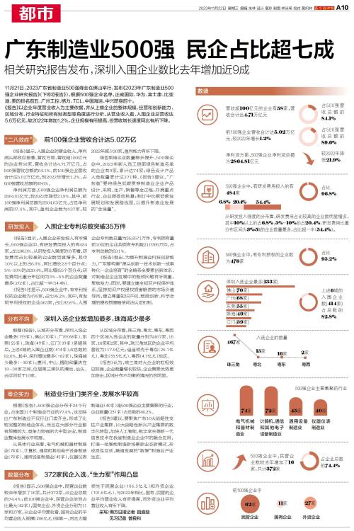 广东制造业500强 民企占比超七成