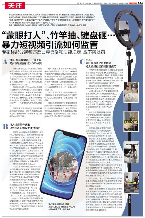 “蒙眼打人”、竹竿抽、键盘砸……暴力短视频引流如何监管