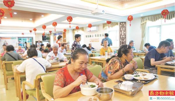 在白云区京溪街居家养老综合服务中心,老人们正在用餐。南都资料图