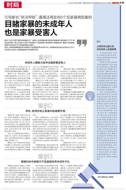 每年11月25日是“国际反家庭暴力日”,最高人民法院接连发布两批反家庭暴力典型案例。
