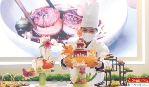 去年12月22日,2022粤港澳大湾区服务贸易大会在珠海开幕。图为粤菜师傅展示雕刻技艺。 南方日报记者 钱文攀 摄