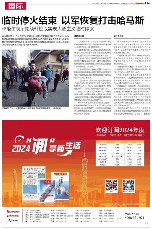 当地时间12月1日上午7时(北京时间13时),巴勒斯坦伊斯兰抵抗运动(哈马斯)和以色列在加沙地带的临时停火结束。