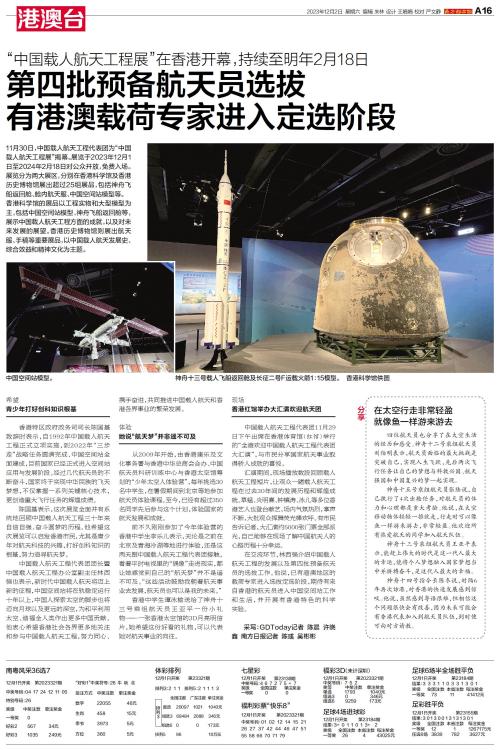 第四批预备航天员选拔 有港澳载荷专家进入定选阶段