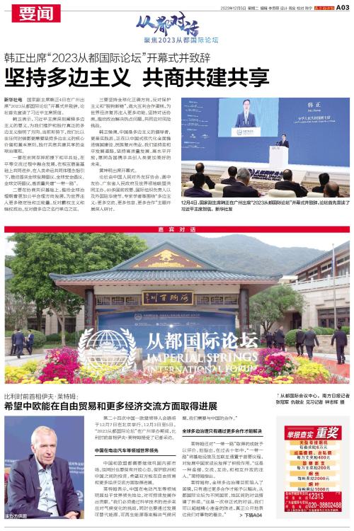 国家副主席韩正4日在广州出席“2023从都国际论坛”开幕式并致辞。论坛首先宣读了习近平主席贺信。