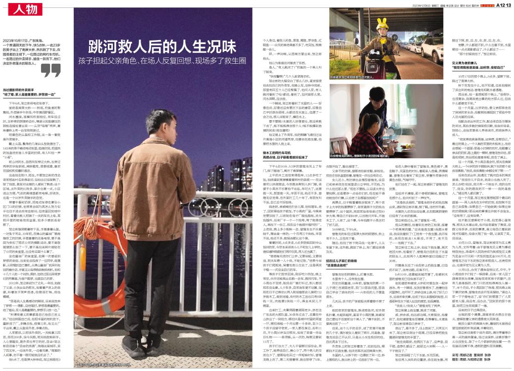 一个普通阴天的下午,快5点钟,一名23岁的男子站上了南屏大桥,然后跳了下去。在围观者的注视下,一位路过的网约车司机,一名路过的外卖骑手,接连一跃而下。他们决定扑救落水的陌生人。