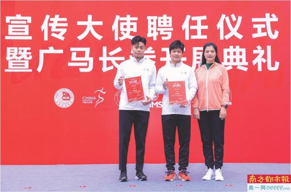 2023广州马拉松赛宣传大使苏炳添、陈冠锋获颁聘书。 通讯员 黄晋文 供图