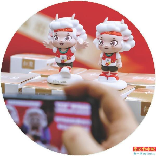 吉祥物周边目前有三种产品,分别是公仔手办、挂包扣和冰箱贴,公仔手办分为静态和动态两种,动态的服装上配有不同编号,限量发行,冰箱贴上的“叻叻”则可以左右移动,这几个产品都非常受欢迎,记者在柜台前看到来购买的人络绎不绝。