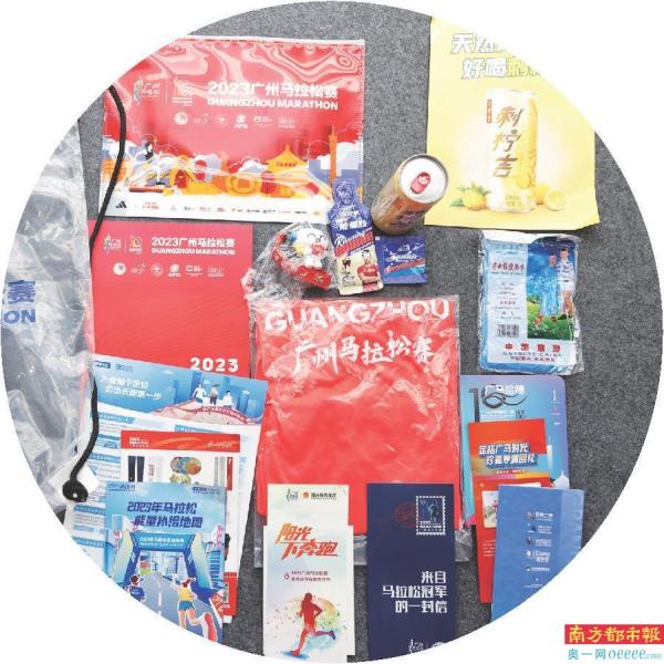 第四次参加广马的谭先生是最早一批来到现场的跑者之一,入场后他首先完成了人脸识别注册,然后便根据中签信息领取了属于自己的参赛包。记者看到,参赛包物资包括号码牌、官方选手服、饮料、能量胶、雨衣、纪念钥匙扣以及一些宣传资料,其中一本名为《广马拾穗》的资料是专门为参赛选手定制的,内容包含了对广州名胜古迹、星级酒店、精品线路等多方面全方位介绍。谭先生就告诉记者,广马的参赛包还是比较实用的,他也更期待周日完赛后收到的完赛包。