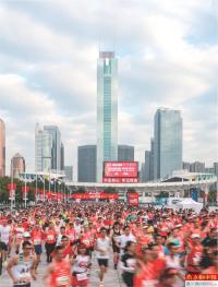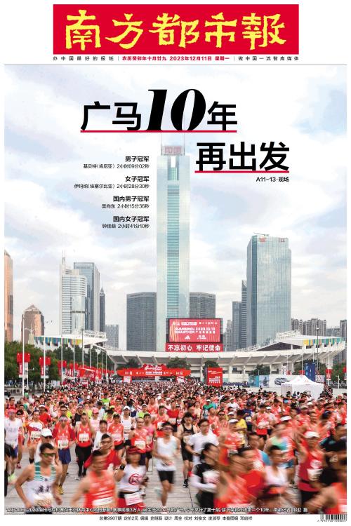 12月10日,2023广州马拉松赛在天河体育中心南广场鸣枪开跑,3万跑者共赴广马十年之约,再度领略广马“一江两岸”的旖旎赛道。