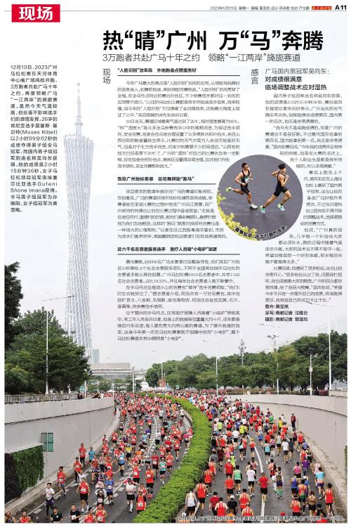 12月10日,2023广州马拉松赛在天河体育中心南广场鸣枪开跑,3万跑者共赴广马十年之约,再度领略广马“一江两岸”的旖旎赛道。