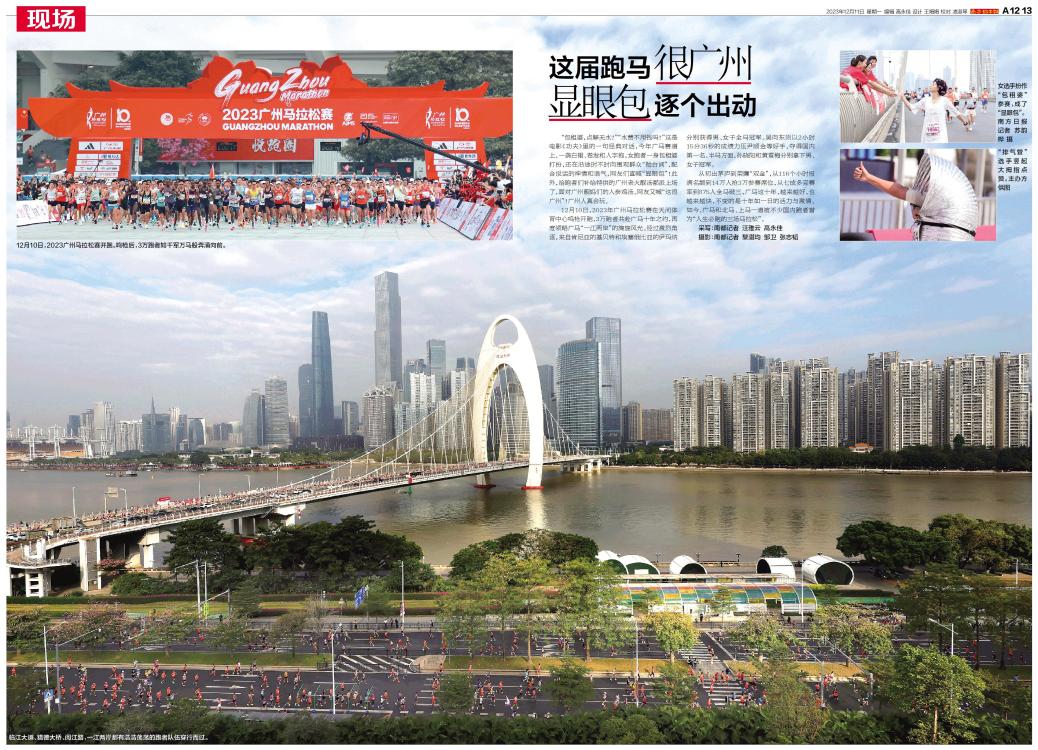 12月10日,2023年广州马拉松赛在天河体育中心鸣枪开跑,3万跑者共赴广马十年之约,再度领略广马“一江两岸”的旖旎风光。