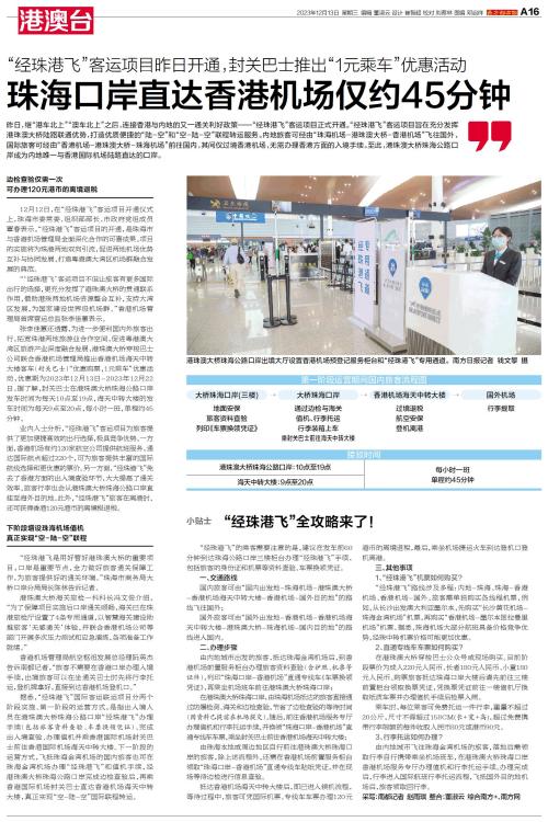 昨日,继“港车北上”“澳车北上”之后,连接香港与内地的又一通关利好政策——“经珠港飞”客运项目正式开通。