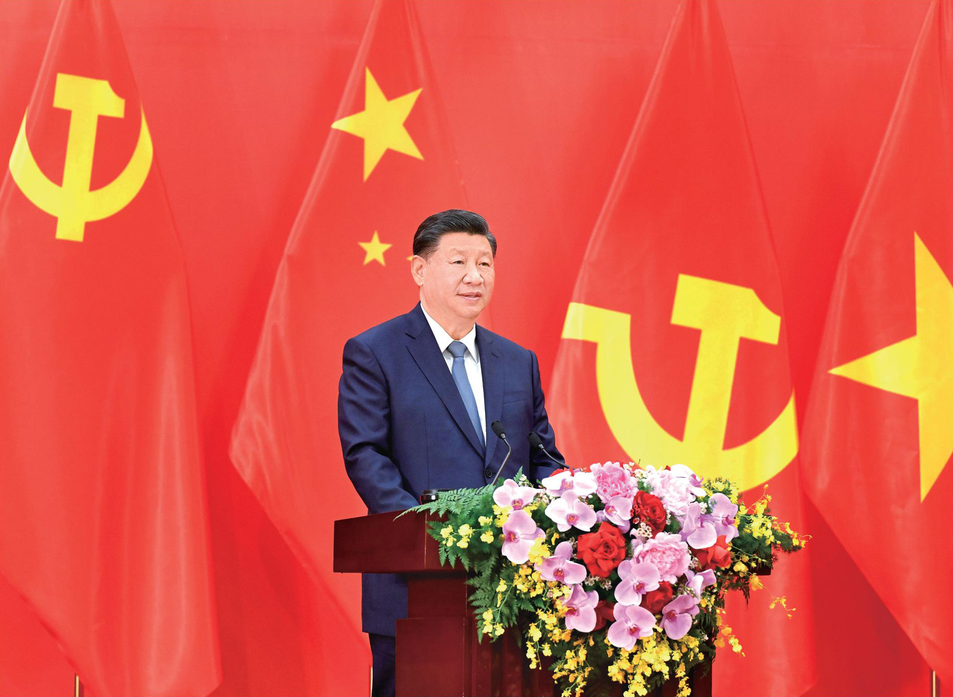 当地时间12月13日下午,中共中央总书记、国家主席习近平和夫人彭丽媛在河内同越共中央总书记阮富仲夫妇共同会见中越两国青年和友好人士代表。这是习近平发表题为《赓续传统友谊,开创中越命运共同体建设新征程》的重要讲话。 新华社发